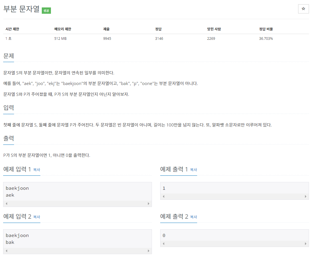 첫째 줄에 문자열 S, 둘째 줄에 문자열 P가 주어진다. 두 문자열은 빈 문자열이 아니며, 길이는 100만을 넘지 않는다. 또, 알파벳 소문자로만 이루어져 있다.