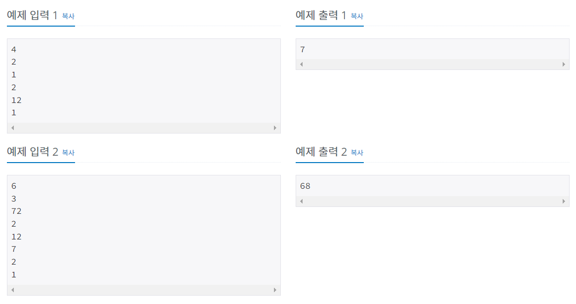 예제 1의 경우 상근이는 11, 12, 21, 112, 121, 122, 212를 만들 수 있다.
