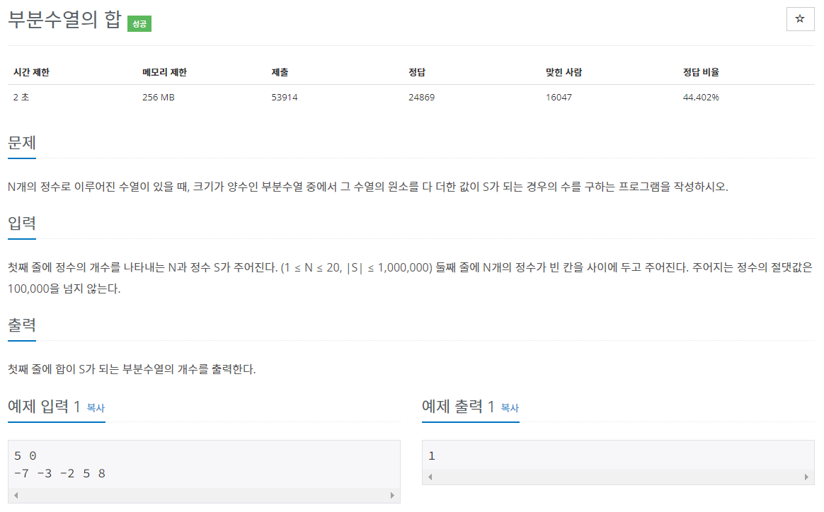 1182번: 부분수열의 합