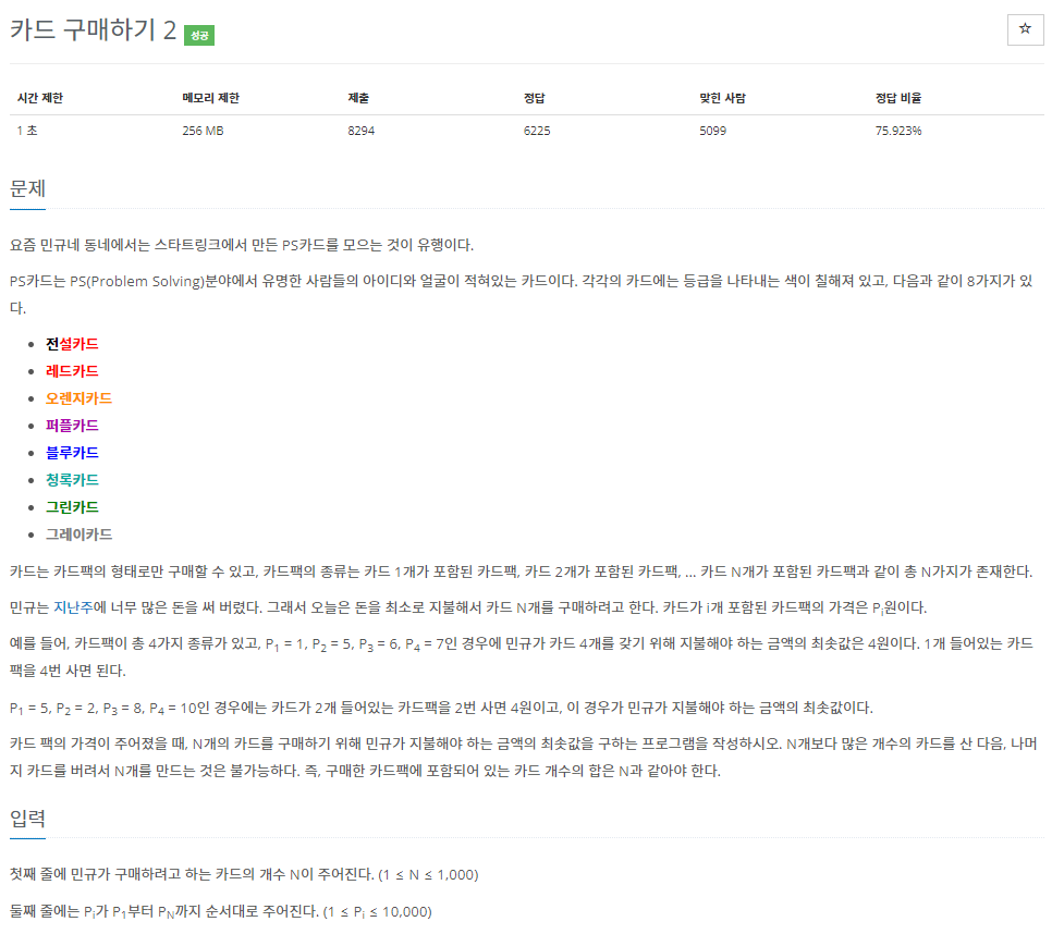 16194번: 카드 구매하기 2
