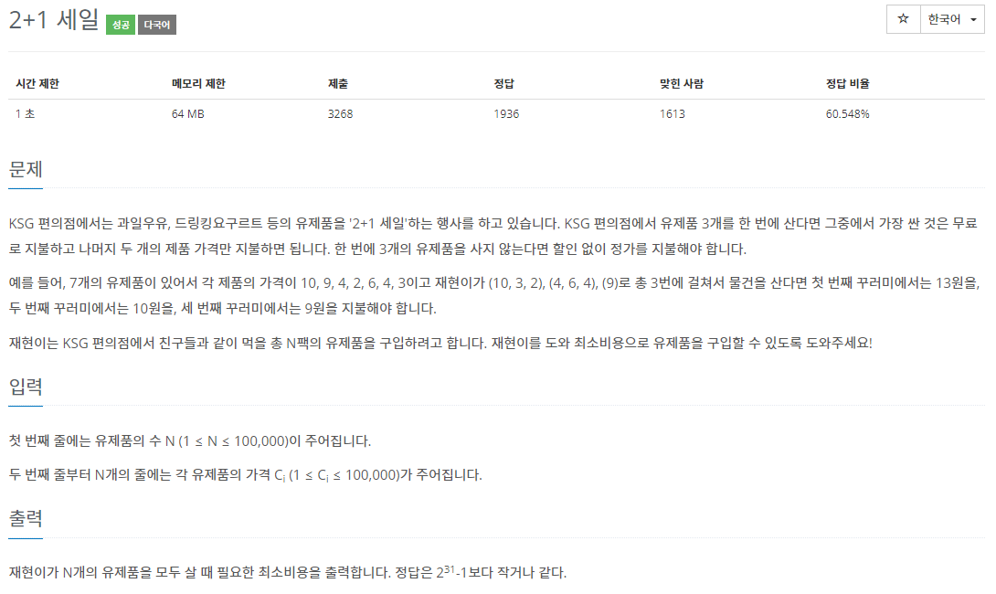 11508번: 2+1 세일