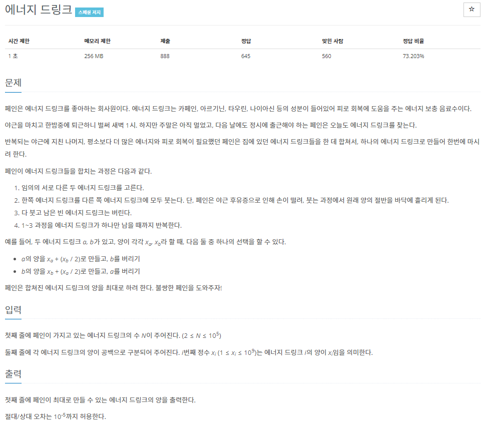 입력받은 수를 내림차순으로 정렬해서 가장 양이 많은 드링크에 나머지 드링크들을 합친다.