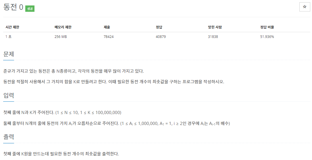 11047번: 동전 0
