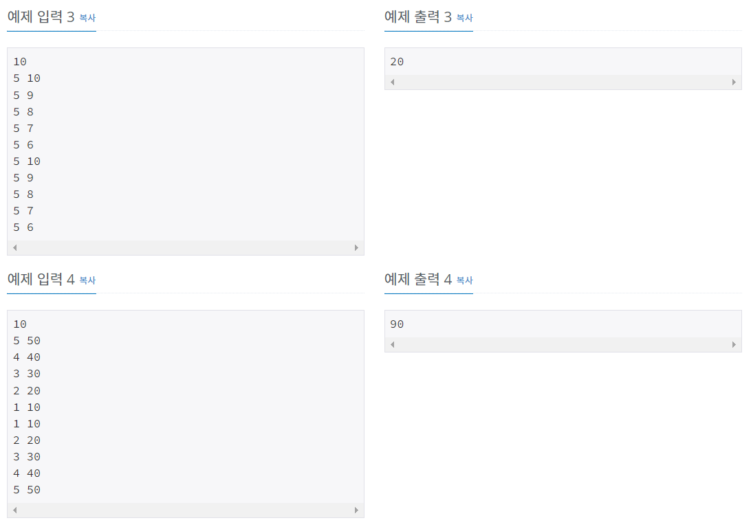 첫째 줄에 N (1 ≤ N ≤ 1,500,000)이 주어진다. 둘째 줄부터 N개의 줄에 Ti와 Pi가 공백으로 구분되어서 주어지며, 1일부터 N일까지 순서대로 주어진다. (1 ≤ Ti ≤ 50, 1 ≤ Pi ≤ 1,000)