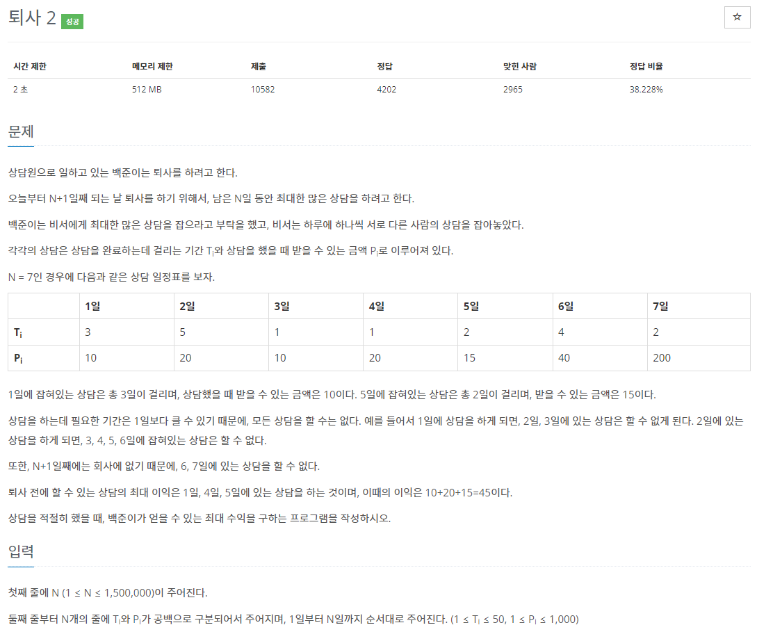 15486번: 퇴사 2