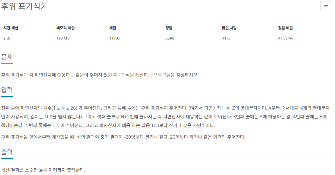 1935번: 후위 표기식2