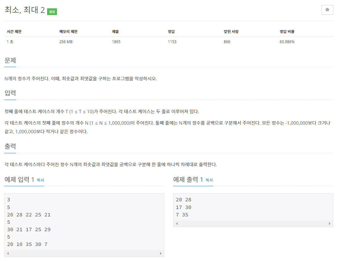 N개의 정수가 주어진다. 이때, 최솟값과 최댓값을 구하는 프로그램을 작성하시오.